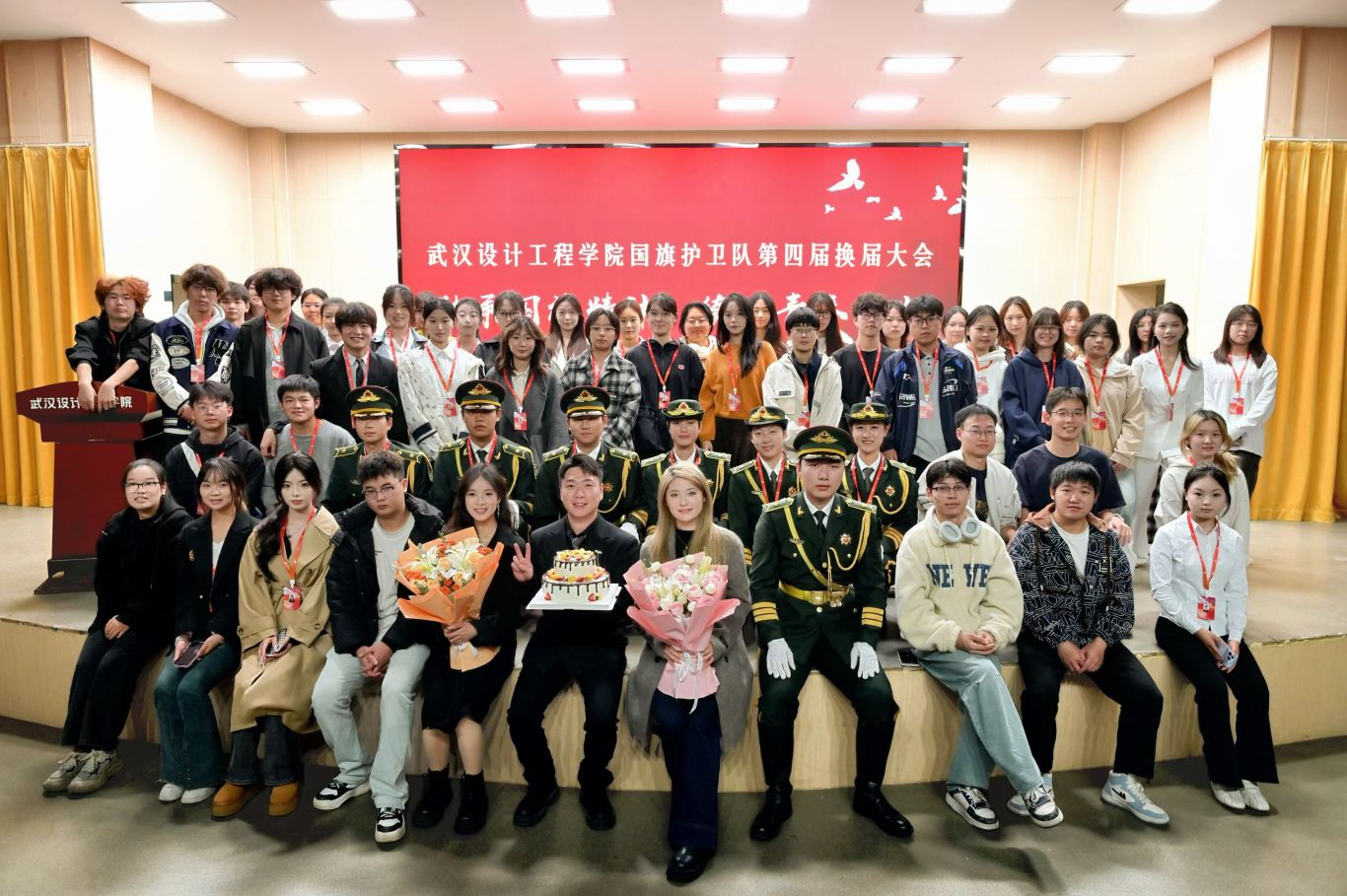 2025年11月13日中午12:30分,武汉设计工程学院国旗护卫队第四节换届大会在咏归小礼堂举行。大会以“传承国旗精神,续写青春荣光”为核心,完成新老队员使命交替。